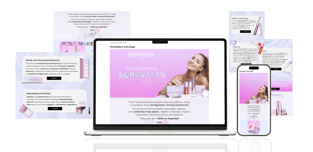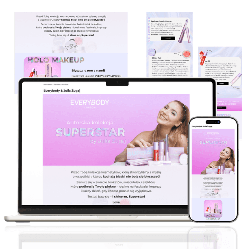 The biggest challenge was creating mockups of the website in a short timeframe, while collaborating with multiple decision-makers (client, influencer, cosmetics brand). Each stage of the project required approval from multiple stakeholders, which took time. An additional challenge was the need to program the website I designed and adapt the code for implementation on the client's website.